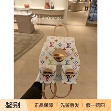 LV联名村上隆女包白色老花白三彩书包双肩包M13081